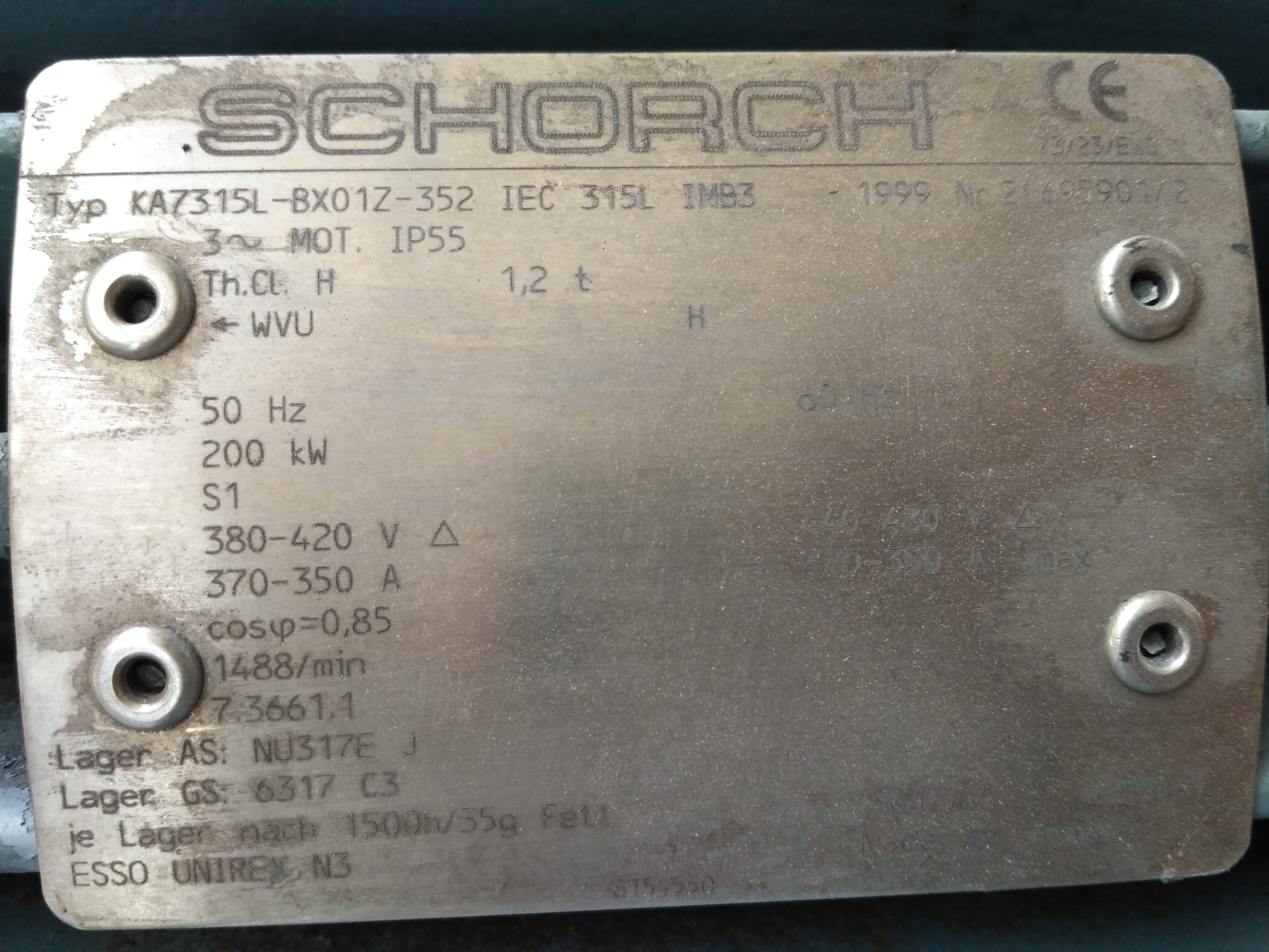 Silnik elektryczny 200 kW 1489 obr/min SCHORCH KA7315L-BX01Z-352